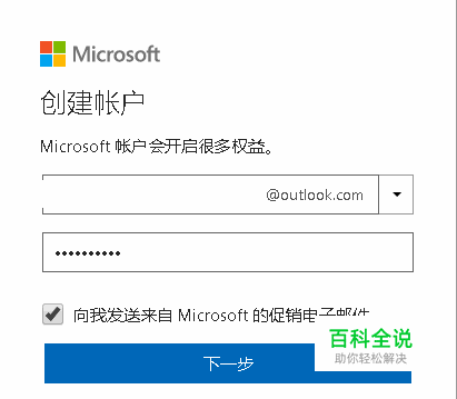 命名自己的帐号,如:example@outlook.com 并设置相应密码,登陆时使用