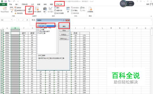 首先要加载分析工具库:打开EXCEL2013,点击菜单栏的开发工具——点击加载项,打开加载宏对话框——勾选分析工具库,点击确定。
