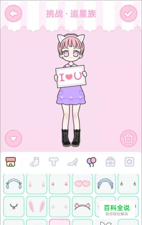 猫耳发卡 为了让自己的偶像更有机会注意到自己,可以搭配上这件猫耳发卡(位置见下图),戴在头上很可爱。 搭配完毕后,戴上“i love you”的牌子点击“√”即可通关去参加演唱会了
