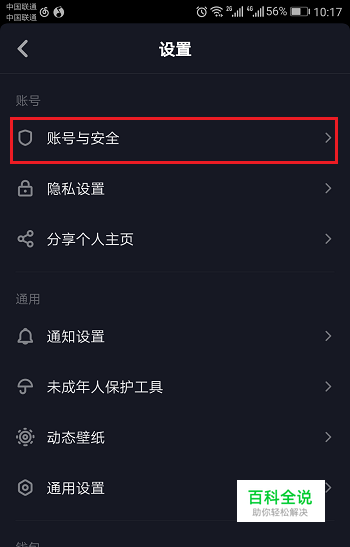 第二步进去设置界面之后,点击账号与安全,如下图所示: