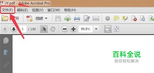 然后用Adobe Acrobat打开这个pdf文件。并点击菜单栏上的‘文件’