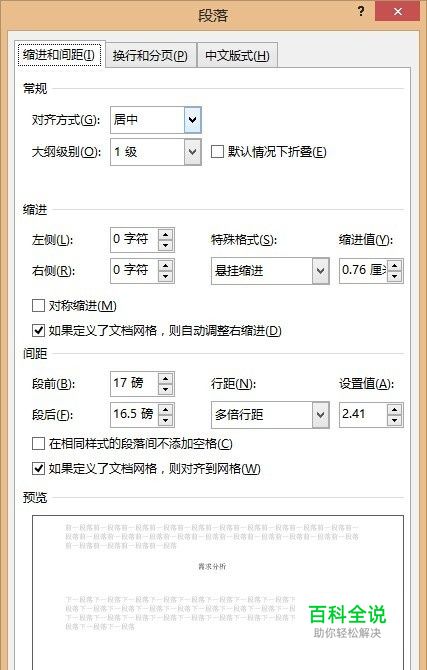 选中一级目录,右键选择段落,弹出段落设置窗口