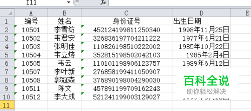 想要把Excel表格中身份证中的出生日期给提取出来,但是如果一个一个手动提取的话,却是一件费力的事,下面就让小编来教大家简单快捷的方法