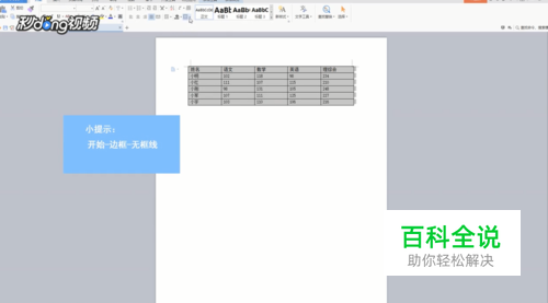 点击上方“开始”,在边框下拉菜单中选择“无框线”。