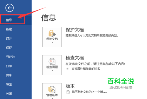 出来的蓝色的菜单栏,我们会看到在最上面是“信息”选项,同样单击一下。
