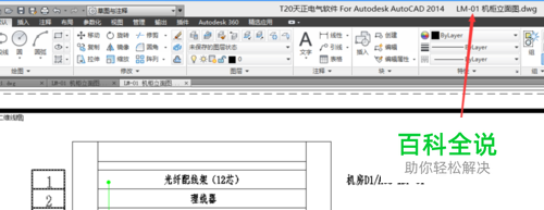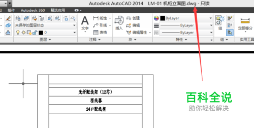 对于不能查看的内容做个对比,用T20绘制的机柜立面图和线缆标识,可以全部显示,查看标题栏,可以看到是用T20软件打开,还是用Autocad打开 如下图: