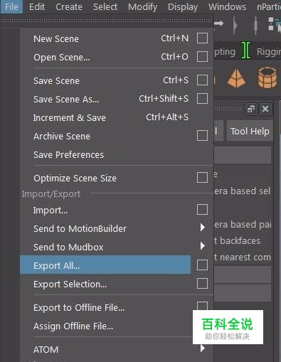 然后点击file--->export all导出全部;也可以选中需要的模型,然后点击file--->export selection导出