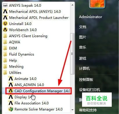 首先需要在电脑里面安装Ansys和solidworks软件(这个就不用说了,自己安装即可,这里主要说设置的方法),在开始菜单里,打开“CAD Configuration Manager”如图所示