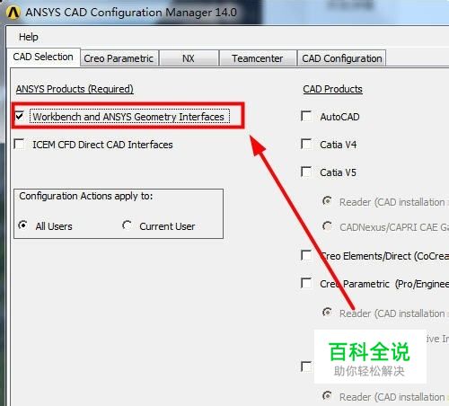 打开界面后,勾选“Workbench and ANSYS Geometry Interfaces”,勾选之后,右边的灰色选项就激活了,如图所示