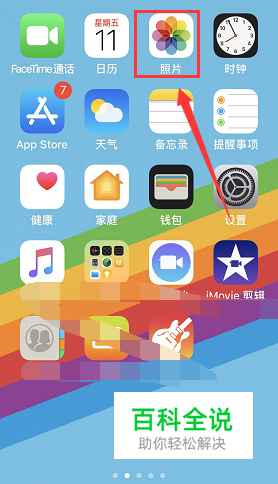 回到手机主页,点击照片,如下图所示
