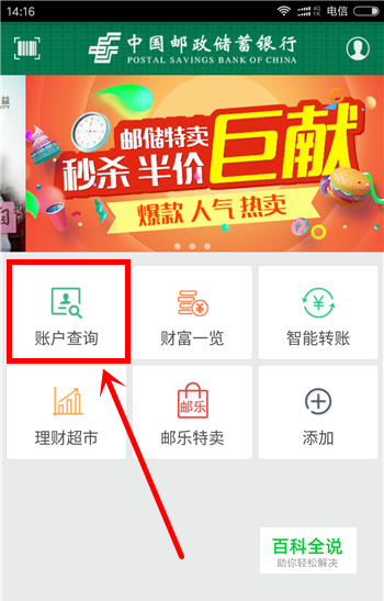 邮政储蓄开户行怎么查?会展示初始页面,点击账户查询后会跳出登录页面。