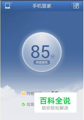 在腾讯手机管家的主页面,我们可以查看到我们手机的健康状况,如果需要优化的话,可以点击优化按钮。然后,点击安全防护按钮进入到安全防护界面。