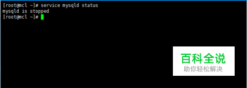 使用命令 # service mysqld status 命令来查看mysql 的启动状态如图所示: mysqld is stopped 那就说明mysql服务是停止状态,如果是 mysqld is running 那就说明mysql服务是启动状态