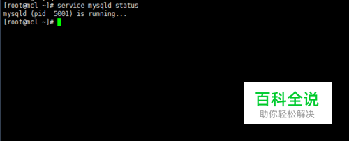 使用命令 pidof mysqld 命令来查看mysql 的启动状态如图所示:如果显示PID说明程序启动,不显示PID即为程序没有启动。