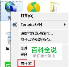 电脑桌面图标找到网络,右键点击网络—属性