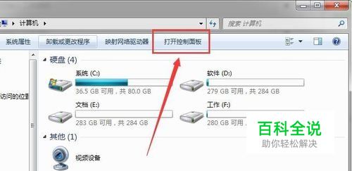 首先我们看下电脑防火墙在哪里设置,我们打开我的电脑,然后点击上方的我的打开控制面板进入。