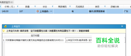 上传宝贝失败:错误信息: 宝贝销售属性出错(销售属性和商品属性不一致),请重新编辑