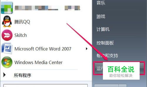 先进入系统服务,进入方法:打开“开始”菜单,启动“运行”程序。