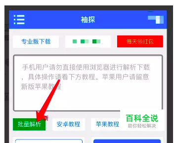 打开袖探,点击首页上的【批量解析】按钮,进入批量解析页面