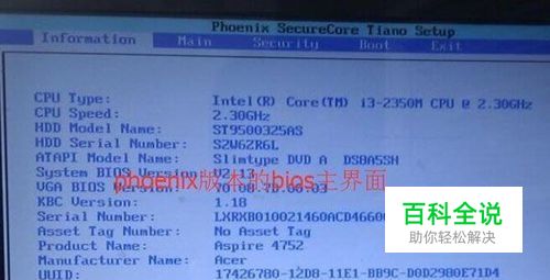 2、进入电脑bios设置界面,这边以phoenix版本的bios为例,如图: