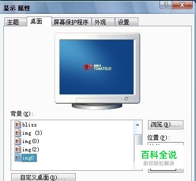 这种文字背景色不好看的情,可以在电脑空白处,右击属性,选择桌面,自定义桌面。会弹出一个对话框。如下图: