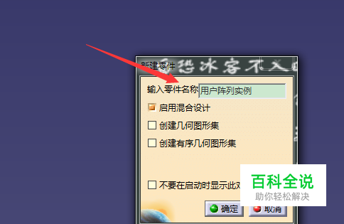 打开CATIA软件,新建一个PART文件,命名为用户阵列实例;