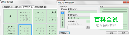 设置多级编号的格式,可以在标题1上点标号,然后在多级编号中点自定义,高级,可以把标题和大纲级别联系起来,然后依次设置1级,2级,3级等。 注意,修改后的多级编号样式,在自定义列表中可以找到。