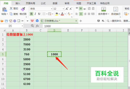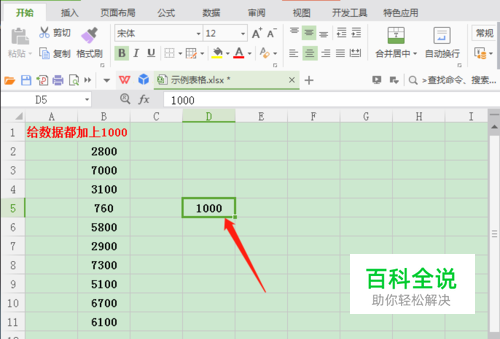 下面以示例来介绍,先在旁边的单元格输入数值1000(如图);