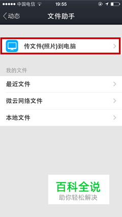 在文件助手界面,点击【传文件(照片)到电脑】。
