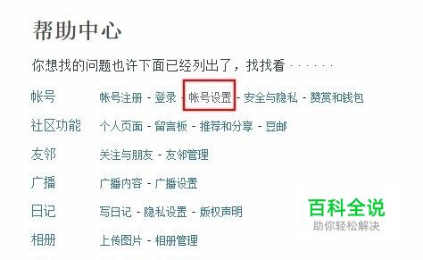 进入到“帮助中心”后,在第一行“账号”的大分类里就有“账号设置”的小分类,点击进去。