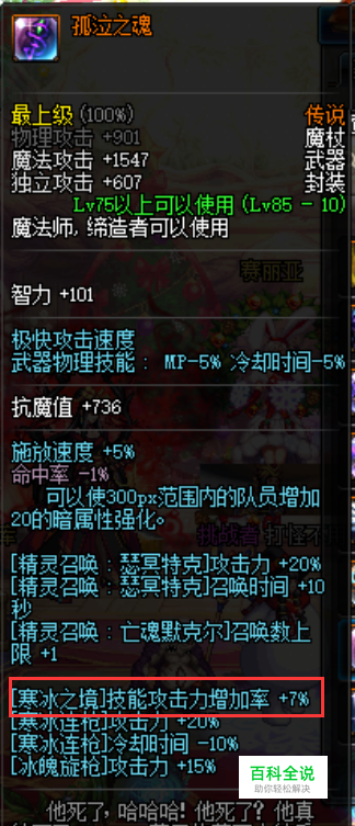 完美武器推荐“孤泣之魂 ”(【寒冰之境】技能攻击力增加率+7%),还可以带以下装备“精灵王之庇护” (技能Lv +3)、“未完成的研发者之矛” (技能Lv +2)、“极寒水晶棍” (技能Lv +2)、“黑龙杖” (技能Lv +2)。