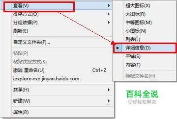 为了演示,现在把这些文件,显示出详细信息。在该文件夹下的空白处,点击鼠标右键,选择“查看”—>“详细信息”