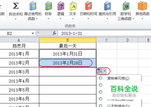 在制定某些表的时候,我们需要快速填充某种具有一定格式的数字,比如填充每月的最后一天,那么我们可以利用Excel的快速填充功能快速地达到要求。