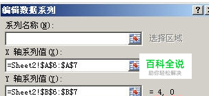 添加其他一次函数数据:在功能区的“数据”组中单击“选择数据”,弹出“选择数据源”对话框。在左侧的区域中单击“添加”按钮,弹出“编辑数据系列”对话框,将“X 轴系列值”设置为y=4x+4函数的x值所在区域A6:A7,在“Y 轴系列值”设置y值所在区域B6:B7,单击确定。