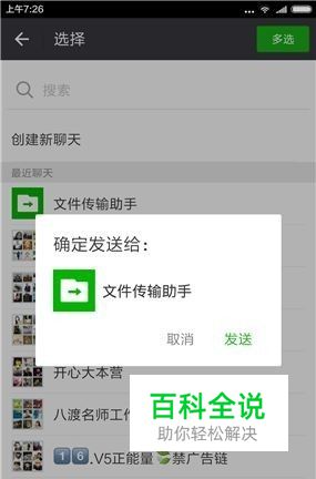 然后,将刚才从微信中保存的图片选中,再找到并点击屏幕右下角的并点击发送即可。