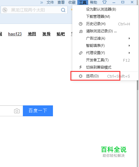 这时以搜狗浏览器为例,点击浏览器的右上角的工具,选择”选项“
