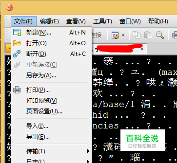 打开你显示乱码的会话,点击菜单栏的“文件”--“属性”,或者使用快捷键“ALT+P”