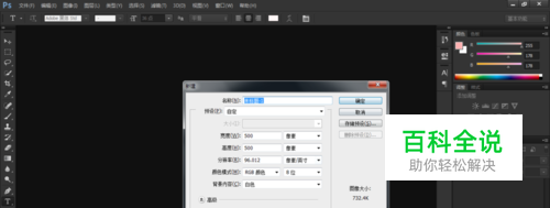 打开电脑中安装的ps软件,ctrl+n新建文件,参数自定义,单击确定按钮。然后打开一张图片。