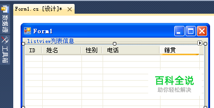 将【text】属性修改为我们需要的程序名称【Listview示例程序】 这样就把程序窗体标头部分的名称改好了。