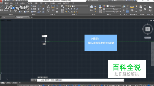 选择“直线”命令,确定起点,输入直线长度后,按“Tab”键。