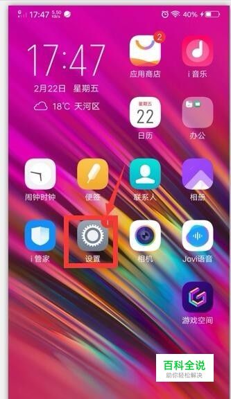 打开手机桌面点击“设置”图标并点击打开。