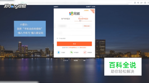 首先登录58同城,选择“手机动态码登录”,输入手机号,输入验证码。
