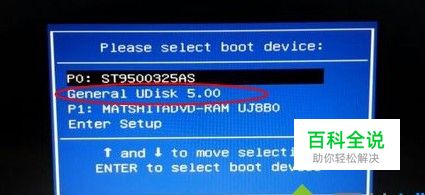 在开不了机的电脑上插入U盘,重启后不停按F12、F11、Esc等快捷键调出启动菜单选择框,选择U盘选项回车,比如General UDisk 5.00,不支持这些启动键的电脑查看第二点设置U盘启动方法;