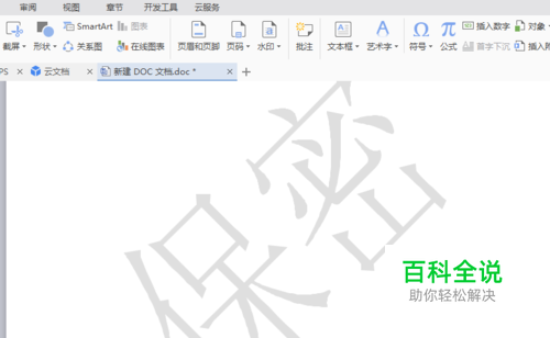 水印有两种形式,1是【预设水印】,如下边的图片所示,随便点击第一个【保密】,出来的水印如图所示。预设的意思就是水印的文字内容、大小、颜色不能随意更改,但是操作简便。如果预设水印不是我们心中的效果,那就点击2【插入水印】。