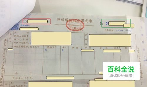 找出需要查验真伪的发票。左上角红色框内的是发票代码,右上角绿色框内为发票号码。