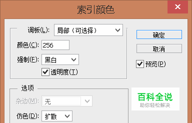 在“图像”菜单下选择“模式”-“索引”,弹出对话框,如下图所示