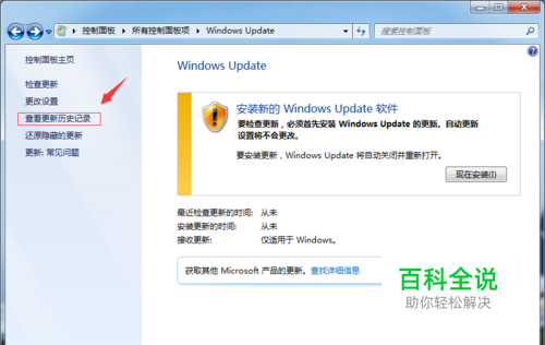 进去 windows update后 点击 查看更新历史记录