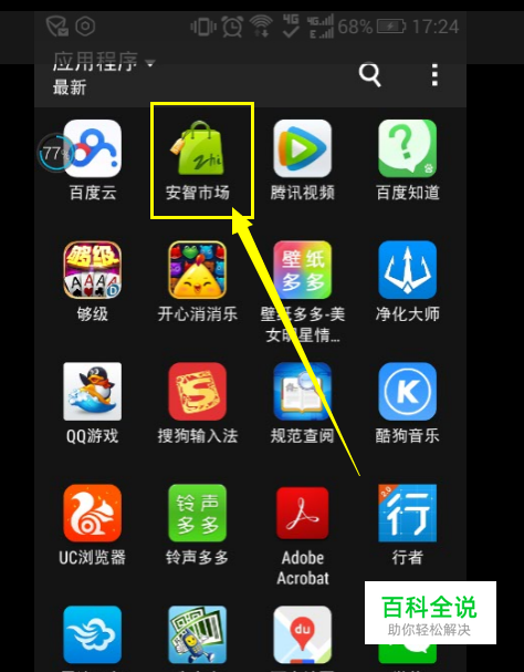 手机需要安装安智市场,然后进入搜索“百度云'