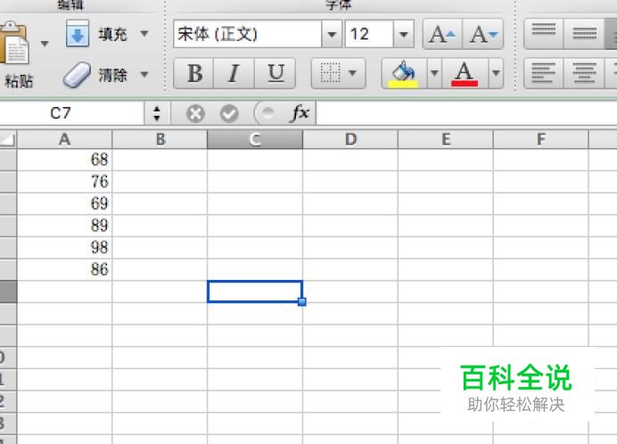 打开excel文档,我们要计算A列几个数据的平均偏差值。