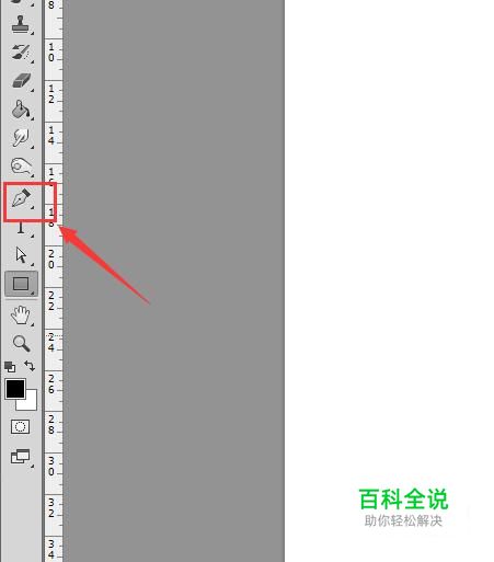 打开ps新建一个文件,然后在工具箱内找到钢笔工具,如图所示: